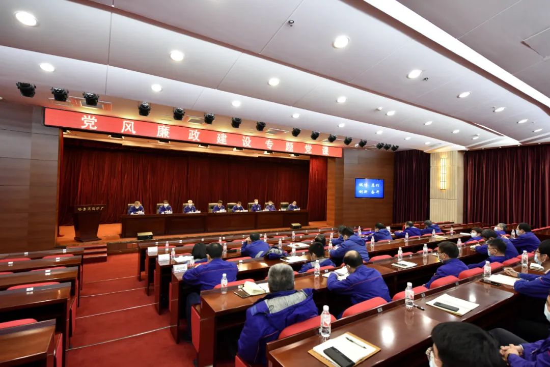 12月20日,哈電鍋爐黨委副書記、總經(jīng)理于龍結(jié)合自身黨史學習教育和黨風廉政學習實踐過程中的成果與收獲,以及對今后一個時期黨風廉政建設工作的思考與展望,采取“線上”“線下”相結(jié)合的方式,在公司科技樓三樓報告廳為全體中層以上管理人員講授了題為“強化黨性教育 筑牢思想防線 永葆清正廉潔的政治本色”的廉政教育專題黨課。公司領導肖坤、高維軍、劉立民、張軍、郝敬文、夏良偉、張健出席并參加學習。哈電鍋爐各直屬單位黨政主要領導在主會場聆聽授課,其他中層以上管理人員在線上視頻分會場參加學習。
