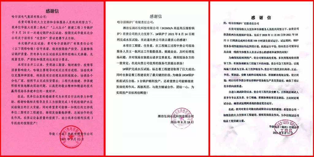 哈電鍋爐憑借著過硬的產(chǎn)品質(zhì)量和優(yōu)質(zhì)細心的服務(wù),贏得了用戶的充分認可和信任。各項目用戶紛紛發(fā)來感謝信,表示由衷地感謝。