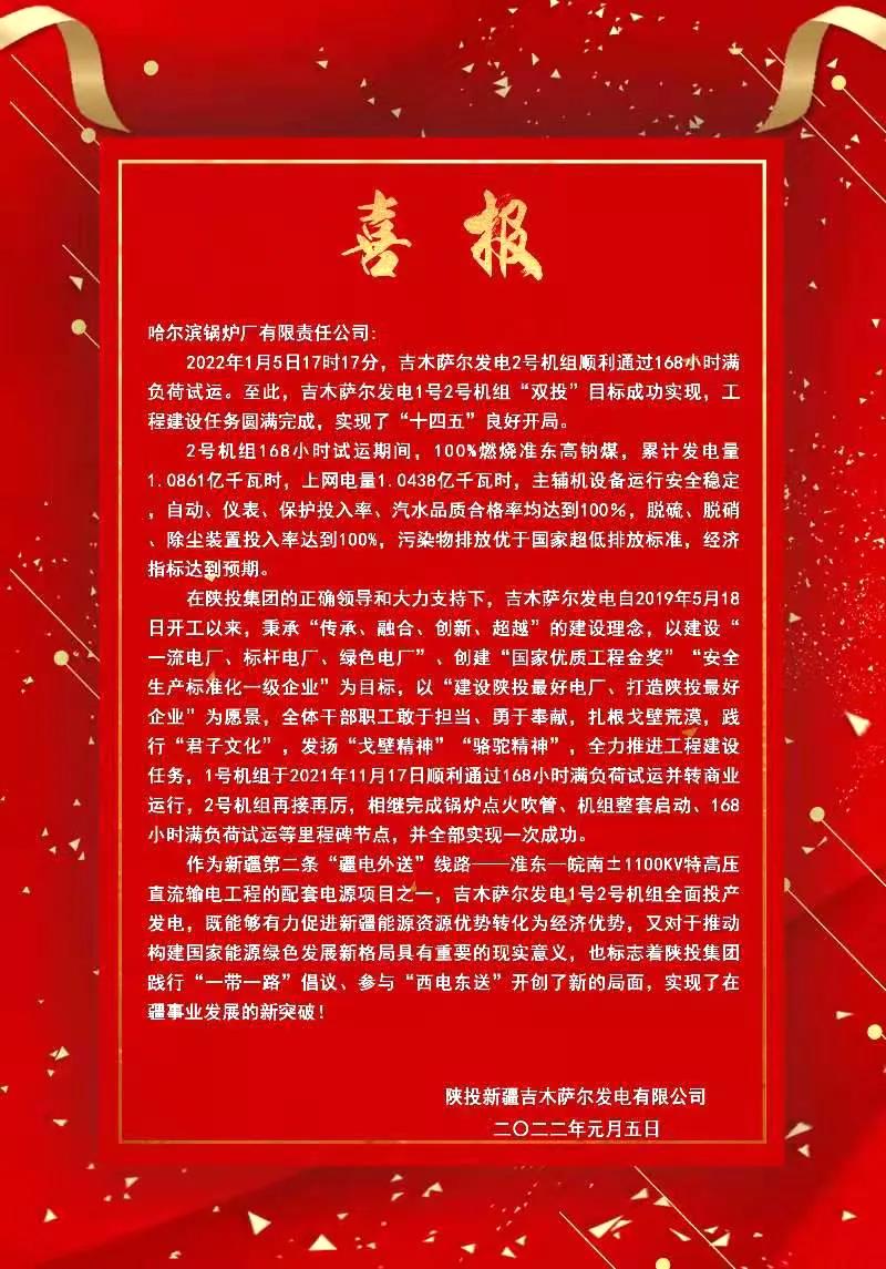 【開門紅】新年首投!哈電鍋爐承制超超臨界鍋爐機(jī)組順利投入商業(yè)運(yùn)行