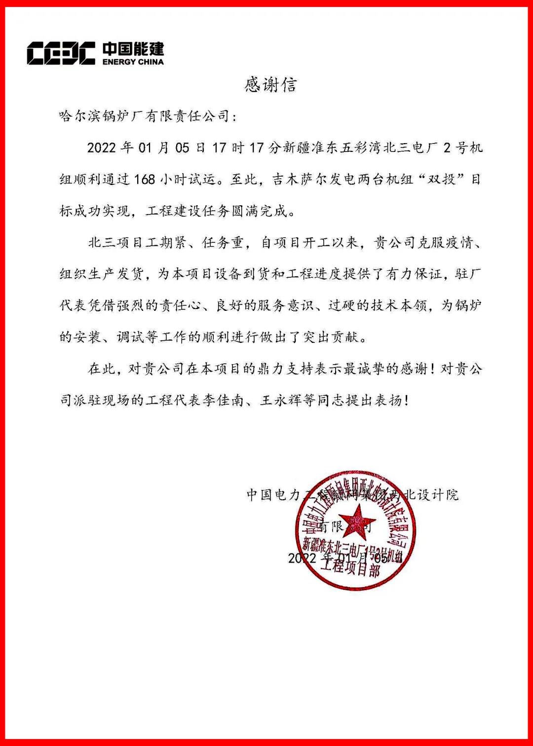 新疆準(zhǔn)東五彩灣北三電廠2號鍋爐機(jī)組是哈電鍋爐在2022年投運(yùn)的首臺超超臨界鍋爐機(jī)組。為了確保機(jī)組按期投產(chǎn),在設(shè)備供貨階段,哈電鍋爐各部門克服疫情影響,通力合作組織生產(chǎn)和設(shè)備運(yùn)輸,確保設(shè)備交付進(jìn)度滿足現(xiàn)場安裝需求。在機(jī)組的安裝調(diào)試階段,哈電鍋爐選派業(yè)務(wù)骨干擔(dān)任安裝代表,配合現(xiàn)場圓滿完成了各項(xiàng)安裝調(diào)試任務(wù)。在機(jī)組試運(yùn)行期間,鍋爐設(shè)備整體運(yùn)行穩(wěn)定、各項(xiàng)性能指標(biāo)優(yōu)良,機(jī)組順利進(jìn)入商業(yè)運(yùn)行階段。
