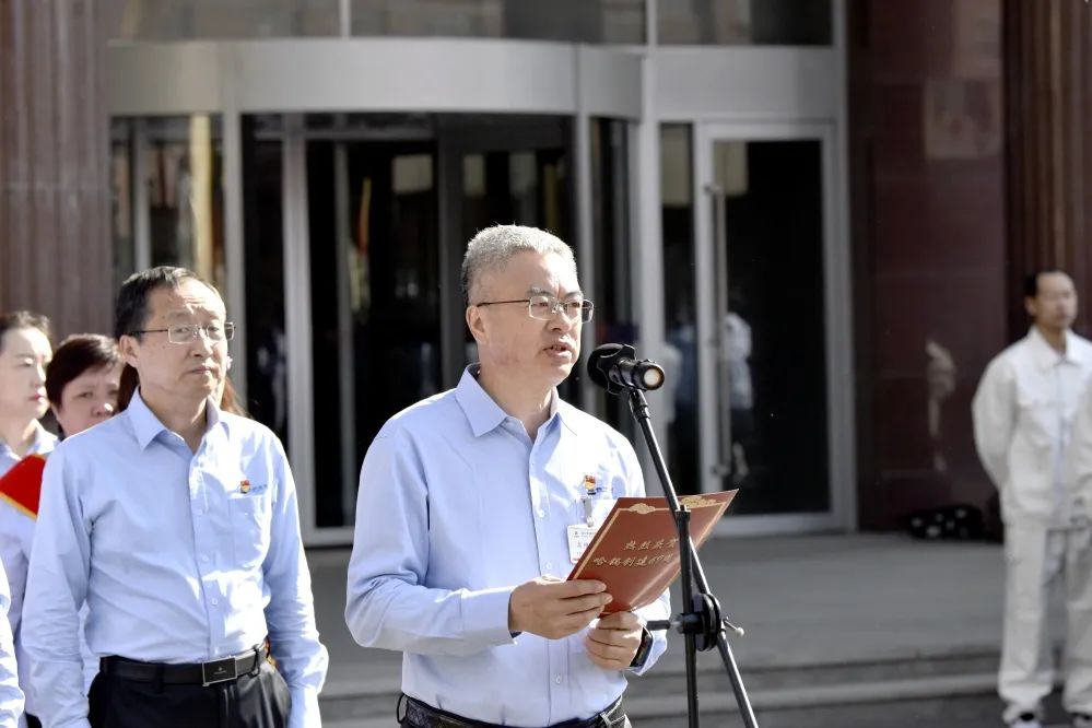于龍?jiān)谥罗o中指出,69載歲月如歌、69載波瀾壯闊。69年前,來(lái)自五湖四海的老一輩哈鍋創(chuàng)業(yè)者們不怕苦、不畏難,以發(fā)展民族工業(yè)為己任,以戰(zhàn)天斗地的壯志豪情,踏上了荒涼寂靜的跑馬場(chǎng),開創(chuàng)了中國(guó)電站鍋爐自主制造的先河。69年來(lái),一代代哈鍋人同舟共濟(jì)、披荊斬棘,牢牢把握發(fā)展機(jī)遇、勇毅迎接困難挑戰(zhàn),為我國(guó)經(jīng)濟(jì)建設(shè)和社會(huì)發(fā)展作出了突出貢獻(xiàn),譜寫了中國(guó)發(fā)電設(shè)備制造業(yè)波瀾壯闊的發(fā)展篇章。回顧哈鍋69年光輝發(fā)展歷程,無(wú)數(shù)國(guó)產(chǎn)首臺(tái)、行業(yè)之最誕生于此,哈鍋研發(fā)的高效清潔燃煤發(fā)電等技術(shù)世界領(lǐng)先,改革發(fā)展業(yè)績(jī)喜人。黨的二十大勝利召開吹響了奮進(jìn)新時(shí)代新征程的號(hào)角,哈鍋也邁上了轉(zhuǎn)型升級(jí)高質(zhì)量發(fā)展的新階段。放眼未來(lái),哈鍋將深入學(xué)習(xí)貫徹習(xí)近平新時(shí)代中國(guó)特色社會(huì)主義思想和黨的二十大精神,落實(shí)哈電集團(tuán)“三步走”工作安排,以“1346”戰(zhàn)略為引領(lǐng),加快構(gòu)建“雙系統(tǒng)、雙支柱”的經(jīng)營(yíng)發(fā)展格局,以更加堅(jiān)定的信念、更加昂揚(yáng)的斗志、更加扎實(shí)的作風(fēng),向著中國(guó)最好、世界一流的目標(biāo)砥礪前行,再譜華章、再鑄豐碑、再創(chuàng)輝煌!