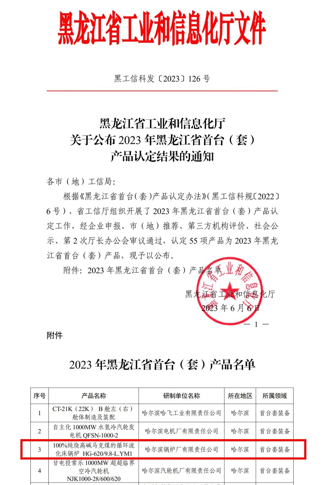 日前,黑龍江省工信廳公布了2023年黑龍江省首臺(tái)(套)產(chǎn)品評(píng)定結(jié)果,哈電鍋爐研發(fā)的“100%純燒高堿馬克煤的循環(huán)流化床鍋爐”項(xiàng)目成功獲評(píng)。